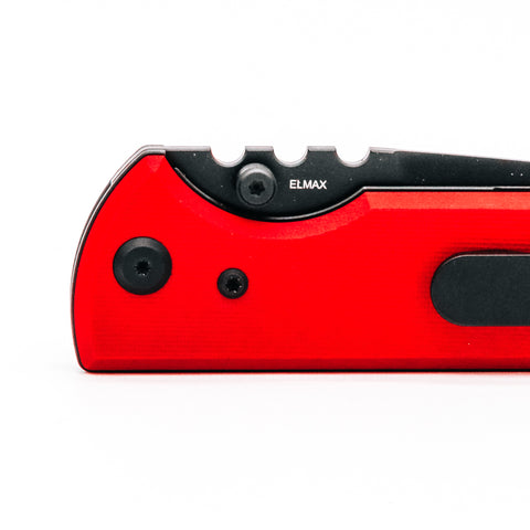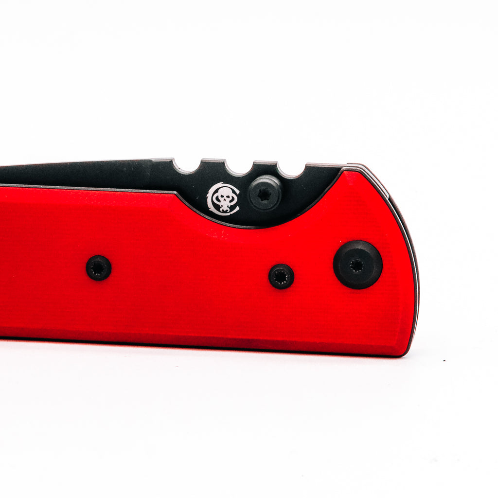 While the production knives feature Black Micarta, these feature Red G-10 scales and backspacer, making for the perfect exclusive. More scale options will come in the future! To replace your scales simply, unscrew everything except the pivot and slap on a new pair!