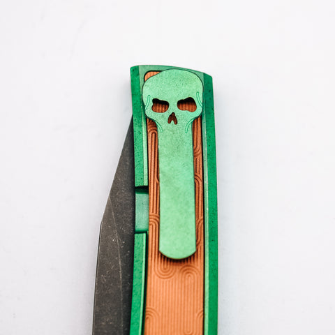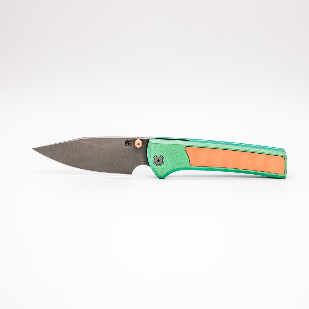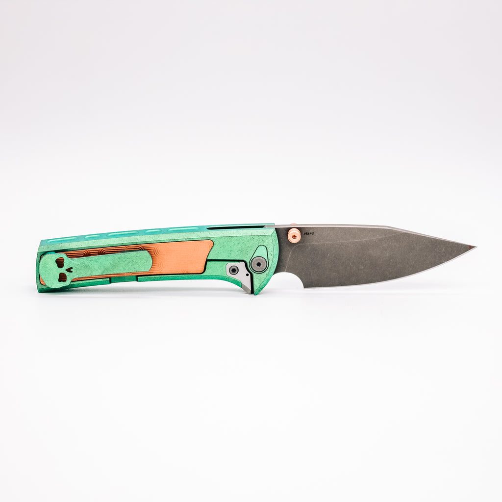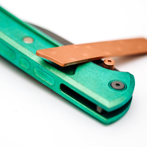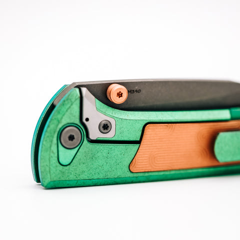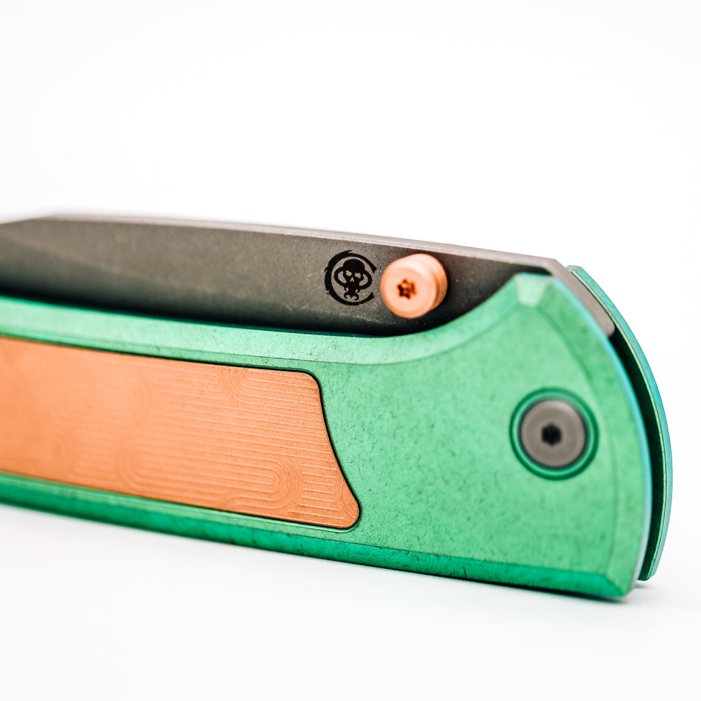 - Handle Material: Milled Copper Inlay, Green Ano Ti