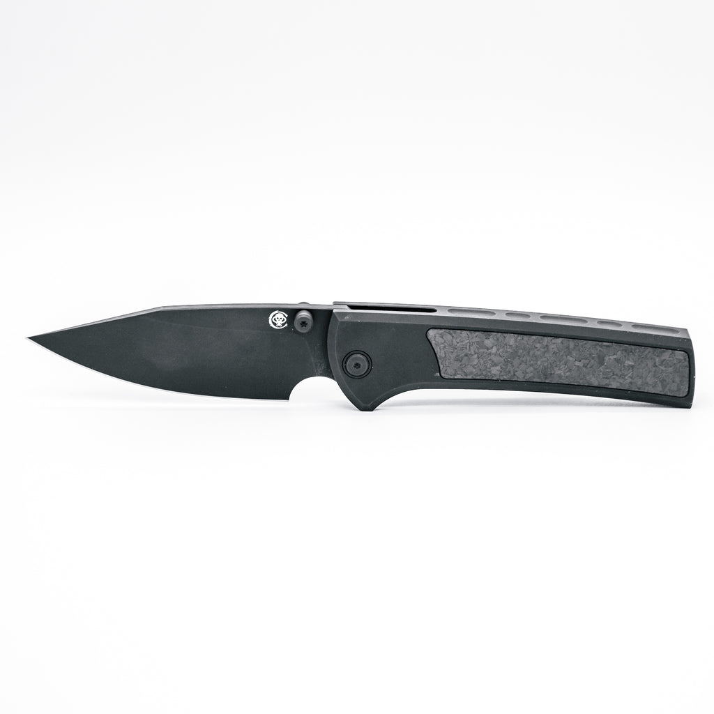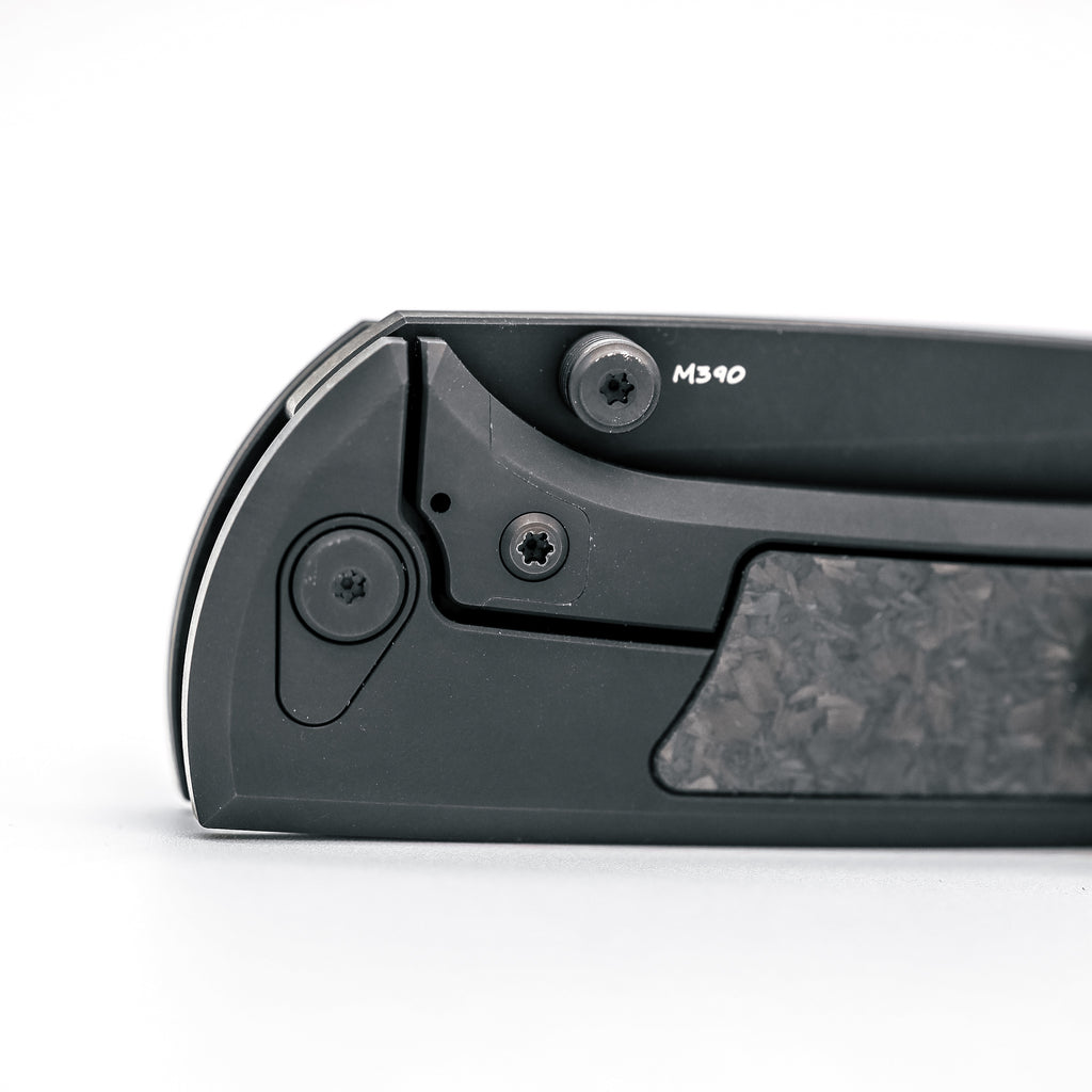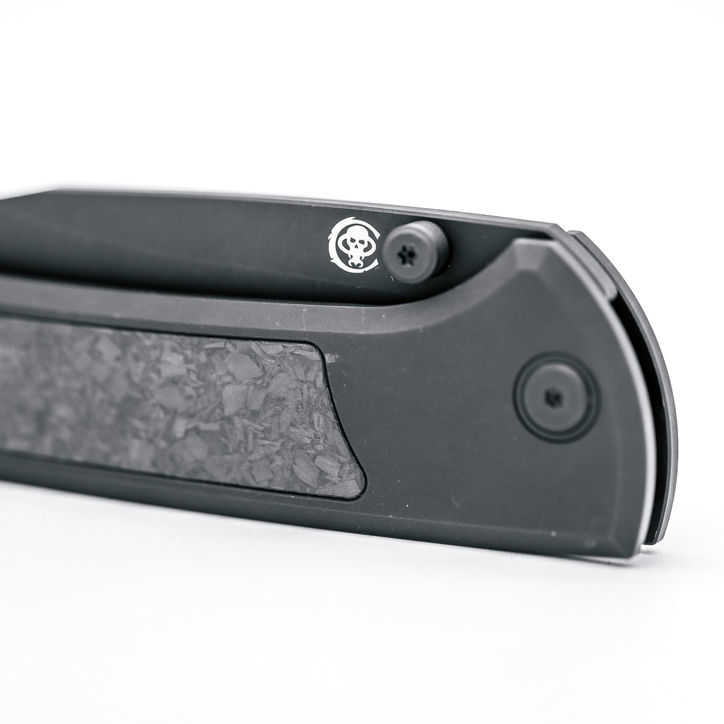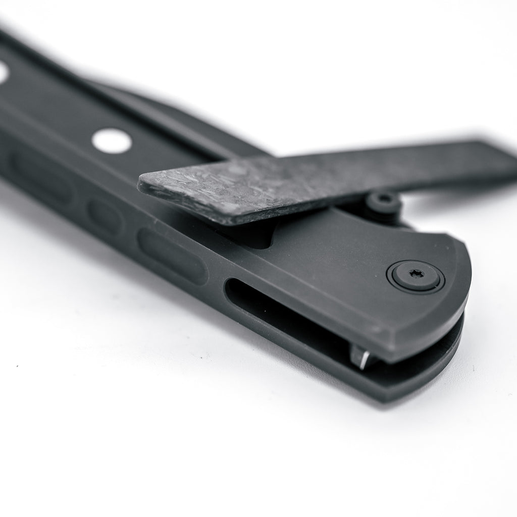 - Handle Material: Shredded Carbon Fiber Inlay, Black PVD Ti